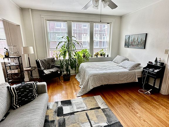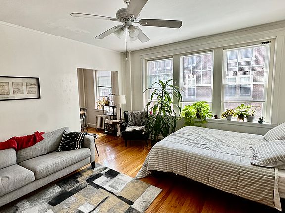 Beautiful studio in a professionally managed apartment building. Hardwood floors and high ceilings through out. Modern eat in kitchen with gas cooking. Walk in closet and brand new bathroom. Heat and hot water included in rent. Common laundry and common bike storage room.