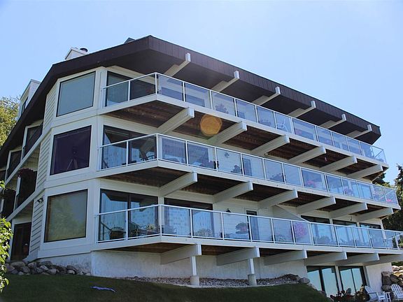 The Lakehouse Condominium. Private location with only 6 units on Lake Michigan in downtown Charlevoix. The views are incredible from this 3 bedroom 2 bath condominium. Each bedroom has a private balcony with views of the water. Large front balcony on Lake Michigan. The association has a private common room in the lower walk out area, including a Hot tub, Sauna. and restrooms. Each unit also has a private storage area and a 1 car garage. Within a few steps of fine dining and shopping. Walk for miles on the beach and enjoy the boats going by