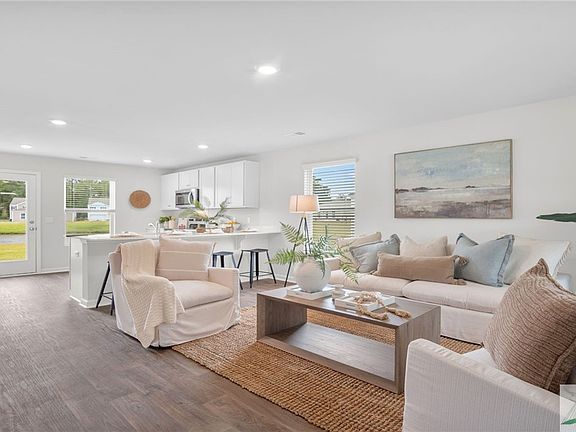 Welcome to Longleaf Village in highly sought-after Effingham County Award Winning School District. Lot w/ easement giving more space between homes. Charming Cottage offers one story living complete w/ 3 bedrooms & 2 full baths. Back patio w/ views of the pond & a large oak tree & the covered front porch offer outdoor living at its finest. Kitchen w/ ample cabinetry complete w/ stainless appliances & pantry is open to spacious living room. Primary bedroom includes LARGE walk-in closet, double vanity bath & walk in shower. Two privately located bedrooms are serviced by a full hall bath. Storage abounds w/ an outdoor area conveniently located off the covered front porch & 2 spacious hall closets. Smart Home Technology & 2" Faux Wood Blinds Included! Pictures, photographs, colors, features, & sizes are for illustration purposes only & will vary from the homes as built. Home is under construction.*Ask how to receive up to $8,500 towards closing cost w/ use of preferred lender!*1 Year HOA!*