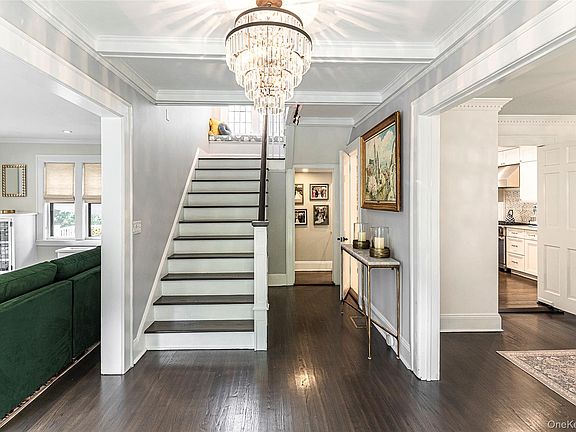 Sited elegantly on a sun filled knoll in the heart of historic Cedar Knolls, this handsome country English manor home is the perfect blend of authentic old world character with tasteful modern amenities. And super conveniently located just a few quick blocks from Bronxville town and train. The large center hall with its wide stair introduces a gracious living room with gas fireplace adjoining a sunny family room with yet another fireplace and original window seats. Beyond the formal dining room, a superbly updated open kitchen features a gorgeous Quartz island appointed with polished nickel fixtures, high end Viking appliances and a lovely coffee bar with wine fridge in the breakfast area. The kitchen has a wide glass slider to a spacious Treks deck which overlooks a well landscaped private yard. Upstairs, the spacious primary suite is appointed with a large sitting room, double sink bath with heated floors and walk in closet. Three additional bedrooms and a bath on second floor plus a private Bedroom and bath on the third with WFH work space and easy storage. The lower level has been made fully functional as a sleek mudroom adjoining the attached garage and laundry room /crafting station. Central air throughout, new boiler, new hot water heater, new AC components, new treks deck, make this home super comfortable and absolutely turn key.