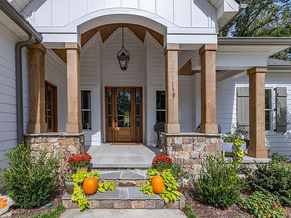 119 Poole Ln: This beautiful home was custom built by Hip and Gable in 2023 and is located in the heart of downtown Clemson on desirable Poole Lane. Located just a 5-10 minute walk from campus, shopping, and dining, this Charleston-inspired Craftsman home offers a split floor plan that ensures privacy for all. The inviting front porch, with its tongue-and-groove ceilings and a gas lantern, sets the tone for the custom details inside, including 10-foot ceilings, engineered "Charleston Sweetgrass" hardwood floors, and Marvin Elevate windows. A foyer brings you right into the cozy open living room with a stone gas fireplace flanked by built-ins. The gourmet kitchen is equipped with a spacious 4' x 8' island, solid maple cabinets, quartz countertops, a 36" Fulgor range/oven, a breakfast/informal dining area, and a large walk-in pantry. For additional dining space, the covered back patio with a tongue-and-groove ceiling and fan is perfect for al fresco dining and/or relaxing. The main level features three bedrooms and three full baths, including 2 en-suites. The elegant owner’s suite includes separate double vanities, a soaking tub, a zero-threshold shower, and a generous walk-in closet. On the opposite side of the home, there is a guest suite and a third bedroom, and a third full bath. An optional fourth bedroom is located upstairs, extending the entire length of the garage with its own private bathroom. Also upstairs, you will find a convenient walk-in attic for storage. The oversized two-car garage includes additional golf cart parking, enhancing the convenience of downtown living. Do not miss out on the current owner's favorite space, the large detached woodworking shop, measuring 20' x 16'. This shop is equipped with 120V and 240V wiring, insulated walls, a loft for storage, and custom tool storage solutions. This picturesque street offers easy walking, biking, and golf cart access to Clemson University and is less than a mile from Lake Hartwell. To say it is a rare find for a nearly new home in this location would be an understatement.