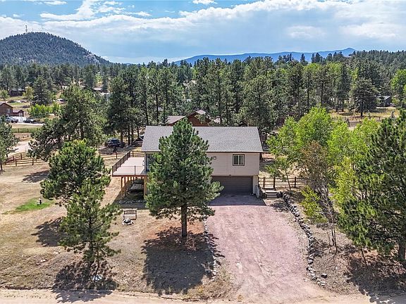 Location and Views! Discover mountain living at its finest in the charming town of Bailey. Whether you are ready to leave the bustle of city life behind or looking for the perfect weekend escape, Quakie Way delivers. Nestled with mountain tops all around you, this home offers 3 beds, 2 baths and 2 car garages and a huge wrap around deck to enjoy the beautiful sunset views of stunning Mt Bailey and Bear Mountain. Be sure to watch the 360-degree ariel photos on the property web site. https://v6d.com/houses/119-quakie-way-bailey-co-80421/ New carpet was just installed on both levels. Nestled on nearly an acre, enjoy your own private aspen grove. This property has lots of dark sky. Sit back and enjoy the expansive wrap around deck to relax and gaze at the intense evening stars. This home has it all. Views are breathtaking! Breathe in the crisp mountain air while taking a hike and listen to the rushing waters of the North Fork of the South Platte River. Whether you love watching wildlife, enjoy hiking, biking, love to fish, or simply someone who loves to relax on the deck, you will feel right at home in Bailey’s relaxed mountain lifestyle. Love horses? Visit the local Burland Equestrian Park. Spend your weekends exploring historic landmarks that helped put Colorado history on the map. Take a 4x4 adventure over the scenic Guanella Pass Byway at 11,669 ft high and wind your way into the picturesque town of Georgetown—a must-do journey for Coloradans and visitors alike. Here, weekends are not about traffic or schedules, they are about lacing up your boots for a morning hike, headed to the ski resorts, hopping on your bike to explore winding trails, or casting a line into the best fly-fishing waters Colorado has to offer.