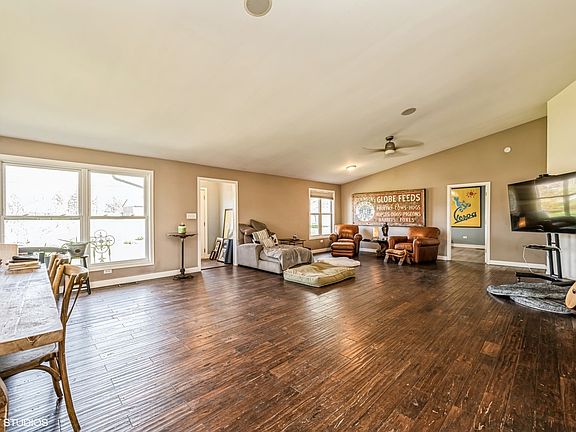 Country living in the heart of town! This custom ranch home sits on approximately 6 acres and backs up to Silver Creek Park where you have access to lovely walking trails. The home features an open concept with a large great room and gourmet kitchen. The butler pantry includes a kegerator/beverage fridge for your entertaining pleasure. There is an extra room that makes for a great office space or potential 3rd bedroom. Enjoy the beautiful setting from your back patio. The property is mostly fenced and has a 30x50 outbuilding with a full 4" concrete floor, electricity and water. Perfect for storing your big toys or business equipment. Zoned agriculture so you can bring your livestock or horses. Eligible for a conservation tax break if you prefer to restore the prairie. The lot has recently been cleared and is an open canvas for your future vision.