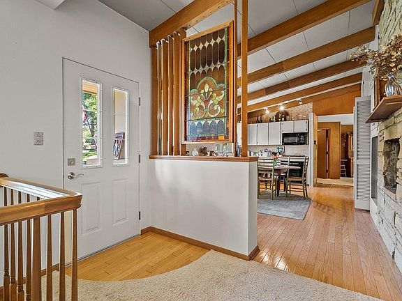 Surround yourself with the beauty and amenities the desirable Timberledge neighborhood has to offer. This cozy three bedroom, two bathroom home is nestled on a serene wooded lot, providing a tranquil retreat and exceptional privacy. As you enter the home, you'll appreciate the spacious layout, offering plenty of room for creative updates and modern finishes. The kitchen, dining room, and living room all seamlessly flow together with a beautiful wood fireplace in the middle. The living area invites natural light, while the adjoining dining space opens up to a large deck that overlooks a picturesque creek and lush, green woods - perfect for outdoor gatherings, morning coffee, or simply enjoying the peaceful surroundings. The main level also features two bedrooms, one bathroom, and an attached two stall garage. Downstairs provides a secondary living area with a walk-out basement, full bathroom, and third bedroom along with a sizeable storage and utility room. The benefits of this home don't stop there. Located in the Timberledge neighborhood is a beautifully maintained and updated community pool, exclusively for your neighborhood to enjoy. Take advantage of this unique opportunity to own a home in a prime location, where nature lovers and families thrive.