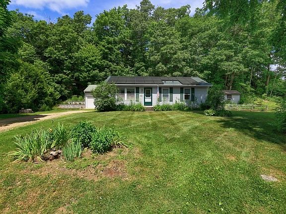 Discover this charming ranch with a spacious oversized 2-car detached garage, ensuring ample storage, work space and convenience. Enter into the renovated kitchen designed for cooking enthusiants with lots of cabinet space and quartz countertops. Abundant natural light throughout. A large bonus room in the basement has many possible uses and has it's own heating/cooling zone. The remodeled bathroom has radiant heat in the tile floor for your comfort. Recent upgrades include freshly painted rooms, new interior wood doors, new front door, new side entry steps, a new roof in 2023, a mini-split system for heat/cooling installed in 2019 and solar installed in 2024 to help offset your energy costs. Relax in the tranquility of the yard filled with perennials, annuals and vegetables with a potting shed beside the fenced in garden area for your tools / toys. Don't miss out!