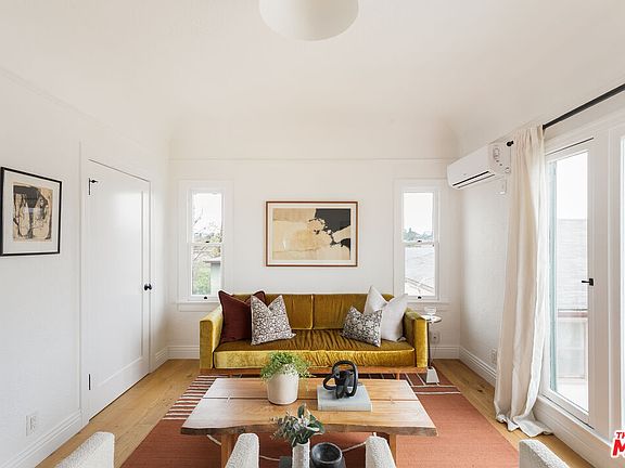 Enjoy breathtaking city views from this bright and airy one-bedroom retreat, where original casement windows perfectly frame the skyline. Nestled within a lushly landscaped community of charming Spanish bungalows, this home offers a spacious shared patio ideal for al fresco dining or cultivating your own garden oasis. Inside, vintage charm meets modern convenience with beautiful hardwood floors, plaster walls, cove ceilings, and a thoughtfully updated bath and kitchen featuring butcher block countertops, stylish fixtures, and ductless AC and heat for year-round comfort. Situated between Echo Park and Silver Lake, you'll be at the center of Historic Filipinotown's thriving culinary and cultural scene. With in-unit laundry, plenty of storage, a one-car garage equipped with EV charging, and low HOA fees, this gem offers both charm and practicality in an unbeatable location.