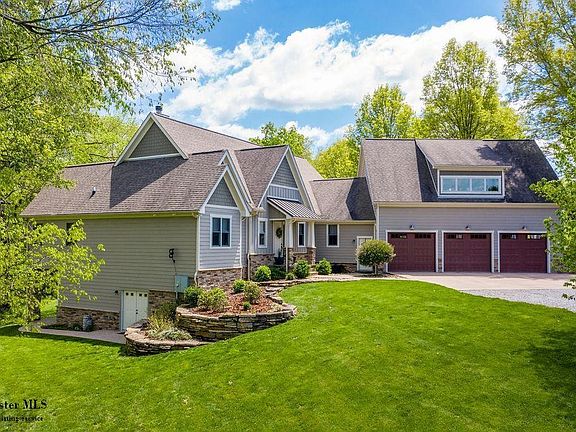 Prepare to be impressed when you enter this superbly maintained & fully custom home on 9 acres. The main floor incorporates a generous custom kitchen, welcoming living & dining room, & guest powder room. The open plan living space has abundant natural light from the wide angled windows. First floor master suite includes free-standing soaking tub, custom walk-in shower, & separate laundry room. The large kitchen boasts granite counters, SS appliances, plenty of storage, tons of cabinet accessories.