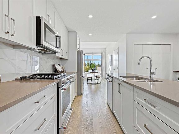 * OPEN SUN OCT 19th 12-3PM * Welcome to this beautifully upgraded 2-bedroom plus flex room, 2.5-bath townhome where thoughtful design and exceptional craftsmanship shine through every detail. Set in the coveted Les Jardins community next to Quarry Park, this home blends stylish living with low-maintenance ease — surrounded by French-inspired gardens, lush green space, and walkable convenience. Step inside and immediately feel the difference — a light-filled, open-concept plan enhanced by soaring ceilings, wide plank hardwood flooring, abundant custom millwork, and purposeful upgrades throughout. The kitchen features extended cabinetry with a matching sideboard and maple countertop, custom pantry shelving, and a redesigned island with added drawers and a full backboard for extra storage and style. The entryway and laundry room continue the custom theme with a built-in coat closet, maple shelving, laundry countertop, and drying rod — all tailored for smart everyday living. Unlike others you’ve seen, just off the heated attached garage you’ll find a versatile main-level office or flex room with its own private entrance — perfect for a home-based business, gym, or creative studio. This added flexibility makes the home ideal for modern lifestyles and work-from-home comfort. Meticulously cared for with fresh paint (2023), A/C serviced (Sept 2024, barely used), carpets and vents cleaned (Sept 2025), and filters (furnace, Lifebreath, and humidifier) changed quarterly. Technology and convenience abound with full Alexa smart-home integration controlling lights, music, doorbell, heating, and air — plus pre-mounted TV wiring, a wireless Ring camera, and solar panels on each unit. The attached heated garage even features hot and cold water hookups, perfect for year-round use. Outside, life at Les Jardins feels like a retreat — enjoy 70,000 sq. ft. of manicured gardens, a gym, community gardens, outdoor lounge areas with umbrellas and fire pits, and even a dedicated dog play park near the underground entrance. Everything you need is right here. This home perfectly balances luxury, practicality, and peace of mind — all in one of Calgary’s most thoughtfully designed communities. Come experience the beauty, the care, and the lifestyle that truly set this one apart. You won’t be disappointed.