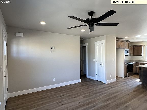 New home under construction by Tabor Building. The "Pathfinder" floor plan features 1008 SF with 3 bedrooms, 2 baths, LVP flooring, and quartz countertops. Estimated completion 10/31/2025. Interior pictures of similar house.