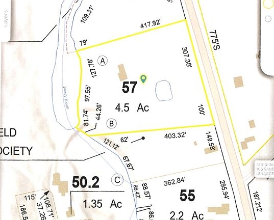 Home Sweet Home. Quaint house with frontage on Sandy Brook. 4.5 acres featuring generous front and back yards with wonderful Pond & Screened-in Gazebo. 3 Bedrooms (used as 2), Livingroom with Fireplace, Den and updated Eat-in Kitchen. 2 Car garage with workbench. Solar Power to help with the bills. Enough space to live, yet room to grow.