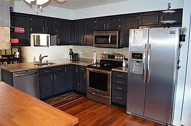 Updated unit with flat yard and amazing view!!!. Updated kitchen with all new stainless appliances and quartz counter tops! Most of these units dont have storage This one DOES!! Seller added pull down steps to attic and boarded floor now lots of storage!!. Deck with steps down to yard. updated fixtures and updated half bath on first floor!