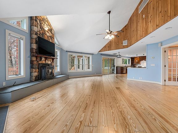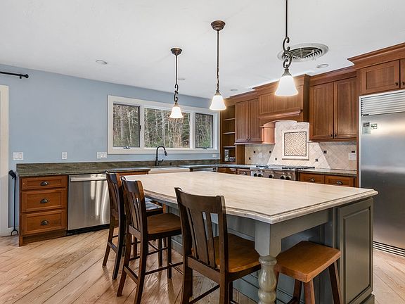 Spacious contemporary home with 3 bedrooms, plus bonus room, and 4.5 baths. Ideally situated on 2+ acres with views of the meadow and pond. You’ll absolutely love the state-of-the-art kitchen featuring granite countertops, a large island, walk-in pantry, professional-grade gas range, custom tile backsplash, and two dishwashers. The open layout flows into a dining area and continues to an expansive living room with vaulted ceilings and a beautiful fireplace as the focal point. The first-floor primary suite offers a generous walk-in closet and two separate baths for convenience. Two more bedrooms, each with its own bath, and a bonus room are on the lower level. You'll also find a family room filled with natural light in the walkout lower level. Additional highlights include a home office, whole-house generator, direct entry from the 2-car garage, a screened porch, and large wraparound deck. Located just minutes from I-89, this property provides easy access to the Upper Valley and Dartmouth-Lake Sunapee Region. The area offers year-round opportunities for outdoor recreation including kayaking, fishing, skiing, ice skating, and more. All this in a lovely country setting.