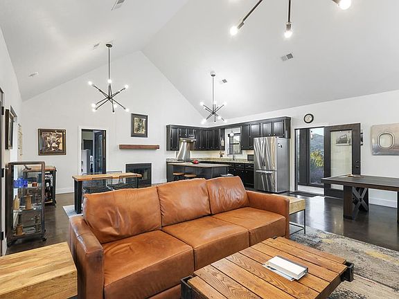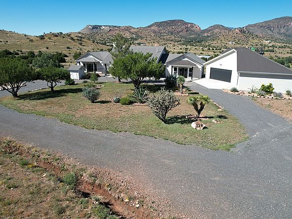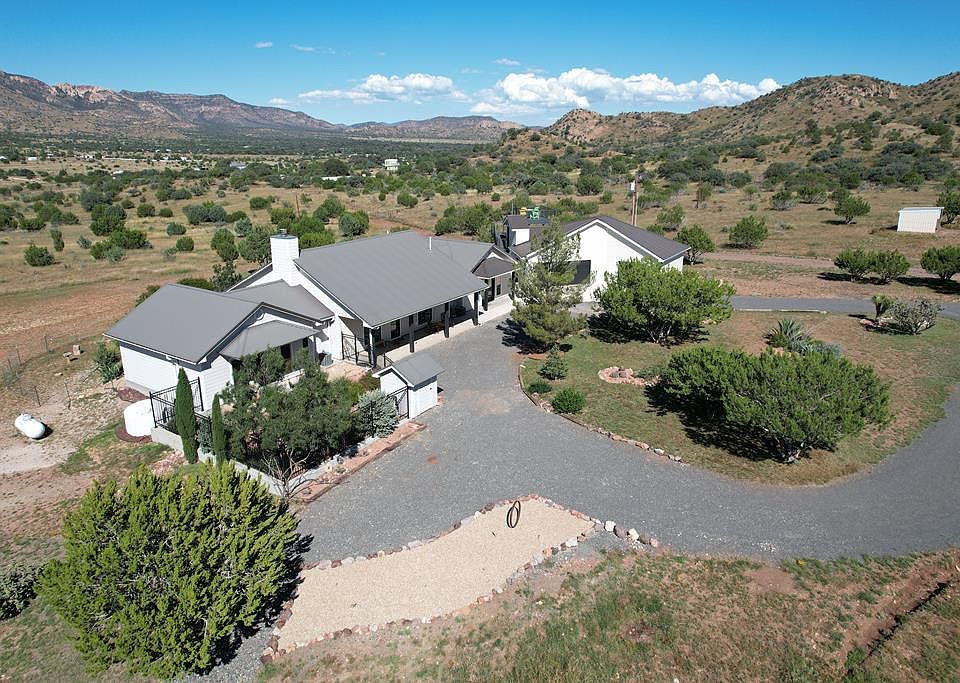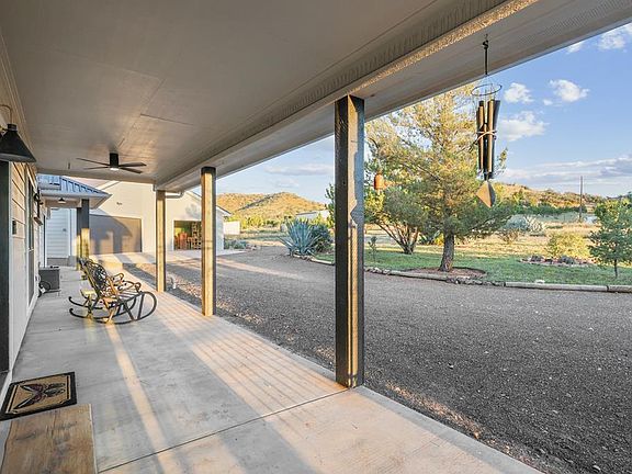 Stunning redesigned 3 bed, 2.5 bath home on 20 acres with concrete and tile floors, and vaulted and 9-ft ceilings throughout. The open layout includes a custom kitchen island, sequestered master suite, and screened porch with spectacular mountain views. Features a new insulated garage with rooftop deck for stargazing, a workshop, and a 1,000 sq. ft. barn. With a private well + back-up, 11k gal. of water catchment for outdoor use, and native landscaping w/rock beds, this property is a must see!