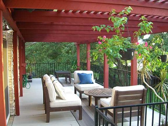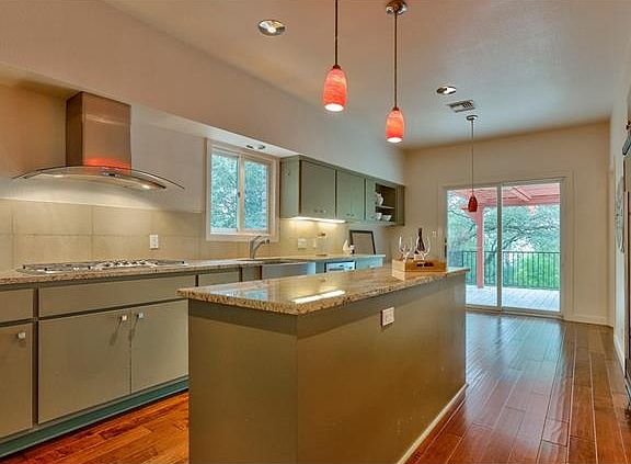Stunning soft modern completely remodeled one story home in "Old Lakeway"; high end finishes include steam shower, gas cooking, 48" built in fridge, glass garage doors, handscarped wood floors; HUGE park like backyard with numerous mature oaks, enormous play scape, "UP' playhouse, over-sized deck with arbor, greenhouse and additional storage; entire house is wood and stone floors; high end appliances & HVAC; 2 master baths and closets; short term lease available with variable rate;furnishings negotiable