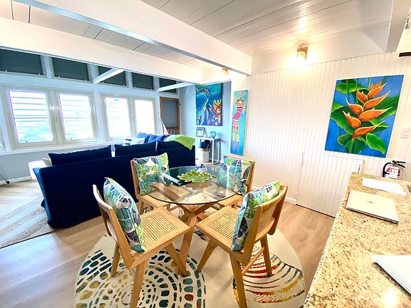 Step into an island oasis! This 1 bedroom, 1.5 bath condo is turn-key and ready for you to enjoy Buck Island views. Located on the East end on a 9-hole golf course, with a disc golf course, 2 tennis courts, pickleball, a pro shop, nearby beach access, Duggan's Reef, Ollies Cafe and a gorgeous pool! This unit has been remodeled and upgrades abound! Here's a few of the major upgrades done within the last 3 years: new windows ,2 skylights, accordion hurricane shutters, interior paint, Luxury Vinyl Tile flooring downstairs, all new lighting throughout, added a full-size washer and dryer, water heater, dishwasher, updated the outdoor shower with a custom tile mural! It has a great short term rental history with wonderful reviews.