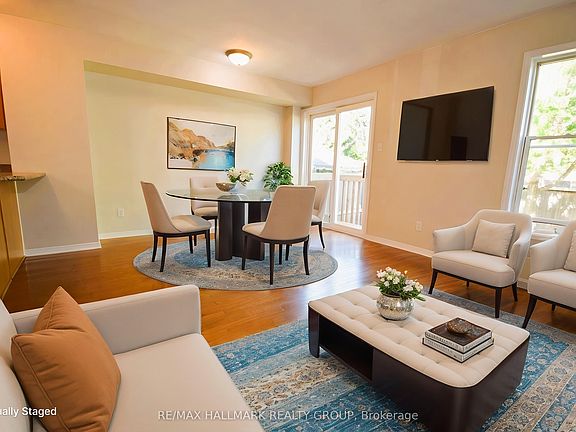 3 Bedroom and 2 Bathroom Townhouse with Finished Basement, Attached Single Car Garage and Fenced Yard. Open Concept Main Level Features Oak Hardwood Floor Throughout the Living/Dining Rooms with a Large Window Overlooking the Backyard. Kitchen Features Ceramic Tile Floor and Solid Oak Wood Cupboards with Generous Amount of Counter Space, Double Sink and 3 Newer Appliances. Sliding Patio Door lead down to the Fenced Backyard. Upper Level Features 3 Good Sized Bedrooms with the Primary Bedroom having a Walk-in Closet. Large Family Room in the Finished Basement with a Laundry Room, Good Storage Space and Utility Room. Parking for 3 cars. Centrally located on a Quiet Street and is Steps to a Park, Walking Path, Many Schools and Public Transit. Quick closing available. Freshly painted 2025, Roof 2021, Carpets 2025, Most appliances 2025.