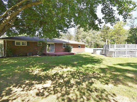Welcome to this three-bedroom brick ranch home on a half-acre corner parcel. Snuggled in a peaceful neighborhood with a backyard surrounded by a white vinyl privacy fence. This home has an attached two-car garage with front and back mandoors and a concrete driveway. A covered front porch with a built-in planter box welcomes you into the house with beautifully finished hardwood flooring throughout, complimented by luxury vinyl plank flooring and ceramic tile. The full basement has glass block windows. A large back patio, a circular 21-foot above-ground pool with a deck, and a designated fire pit area amongst beautiful mature trees make the backyard paradise. your private showing.
