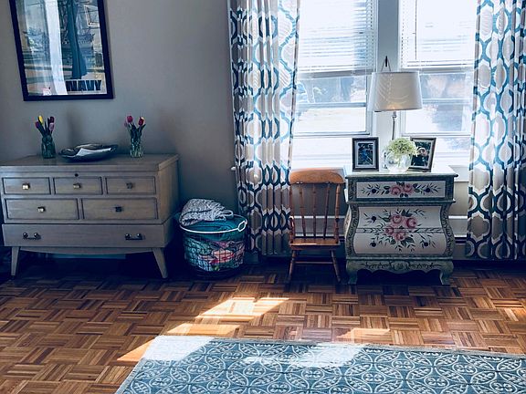 Bright & airy layout boasts high ceilings on first floor! Freshly painted, large bedrms w/large closets. Beautiful parquet floors! Brand new Navien heating system. Cozy porch w/private yard. Detached garage. Overlooks ballfield. Short walk to RW park