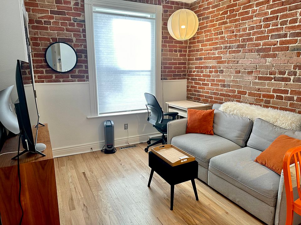 Bright and full of character, this 400 sq ft apartment feels much larger thanks to high ceilings, exposed brick, and a smart layout with ample storage. Located on the ground floor in a historic four-unit building, it combines vintage charm with modern updates.