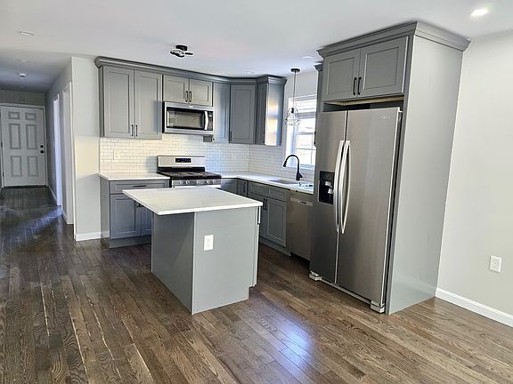 Offering this Stunning Newly Constructed & Spacious 4 Bedroom Apartment on the first floor with Quality finishes throughout. Located on a quiet dead-end street, this Sun Filled Unit features an open concept layout, hardwood floors, 2 Full Marble Tiled Bathrooms, new kitchen with stainless steel appliances, quartz island and countertops. Additional amenities include large windows that offer abundant natural light, laundry room with new washer & dryer, central air & assigned parking spaces.