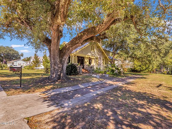 It is rare that such a unique house goes on the market in Old Town Bay Saint Louis. A perfect craftsman bungalow, circa 1909, on the first block of Washington St. Two stories. Flood zone X. A half block to the beach and sea wall. This bungalow is set on a gorgeous and oversized lot with 150 feet road frontage and 130 feet deep. This lot is over half an acre! The yard is lush with many trees, and there is a gorgeous live oak in the front on the eastern side of the house. A spacious L shaped front porch gives welcome, and the impressive south facing Dutch door opens in to a sitting room with fire place. Beautiful original windows let in an abundance of natural light. Gorgeous hardwood floors throughout the house. Behind the sitting room is a marvelous dining room with painted beams and coffered ceilings, and strikingly painted wood paneled walls. A secluded and private porch opens off of the dining room facing the back of the house. Off of the sitting room, in the front of the house, is a music room with built in shelves, and seating along the wall, offering another intimate and cozy place to light. The primary bedroom is downstairs and adjacent to a meticulously renovated tiled bathroom with a walk in shower. Off the front hallway is a spacious den opening on to the kitchen. The kitchen has stunning sinker cypress cabinets, gas cooktop, two ovens, and soap stone counters. Off of the kitchen is the back hallway, a half bath, and stairs to the second floor. A U shaped landing upstairs, a full bathroom, and two bedrooms each with a bank of windows. There is a large cedar closet and a floored attic. Stroll to down town Bay Saint Louis along the sea wall to the municipal marina, shops, restaurants, coffee houses, galleries, and all the entertainment Bay Saint Louis has to offer.
