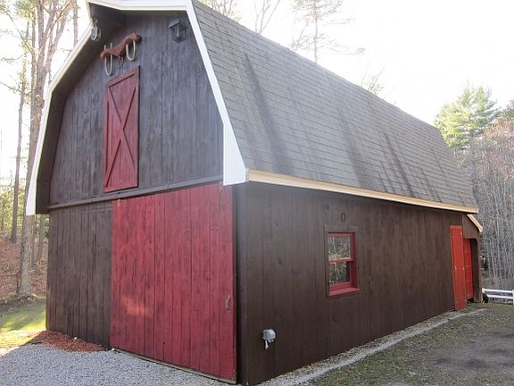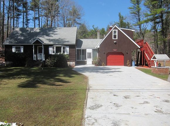 4 bedroom Hampstead cape surrounded by conservation land. Very private 1.43 acres with 1 car attached garage. 2 story barn is great for horses or storage. Heated guest suite or studio over garage with +é-+ bath & kitchenette. Stay warm all winter with pellet stove in 1st floor family room & wood stove in lower level family room. Large deck overlooking yard and woods beyond. 1st floor master bedroom. Hardwood floors in living room & all bedrooms (some hiding under carpet). Sun lit dining room with ceramic tile flooring. Living room with large bay window, kitchen with breakfast bar, electric range, dishwasher & microwave. Separate laundry room in lower level and plenty of storage. Walk out lower level. Private wooded setting. New 4 bedroom septic in 2014. Hampstead area water. One year home warranty included!