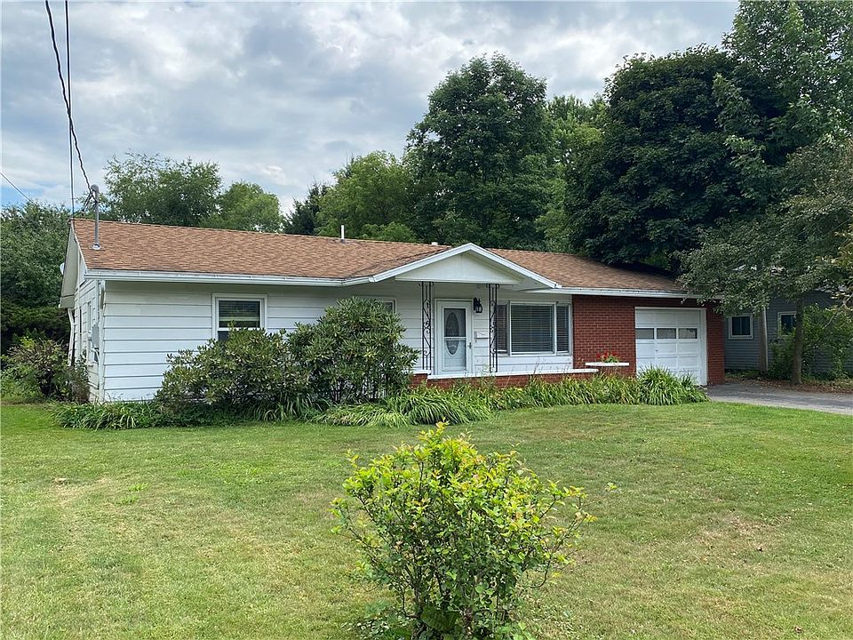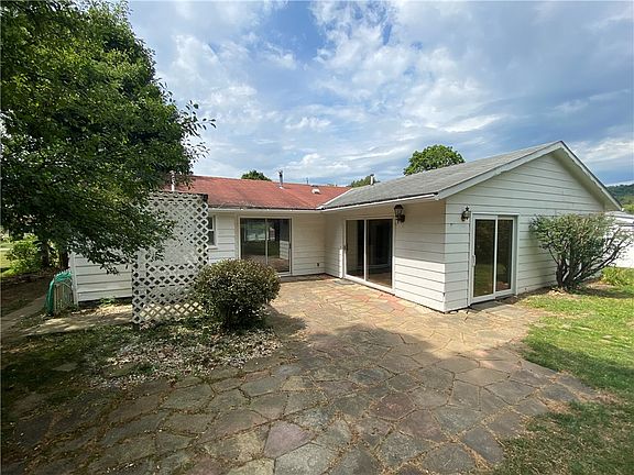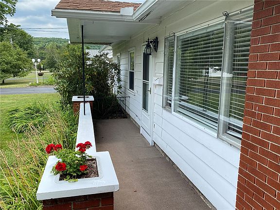This 3 Bedroom, 2 Full Bath, Ranch Style Home is located on a neighborhood street, just 1.2 miles from the downtown business district and Island Park. The home is also located behind the Wellsville Elementary School and athletic fields. The home has a beautiful sunroom with two sliding glass doors and ceramic tile floor, located conveniently off the kitchen. There are two smaller bedrooms at the front of the home, and a third at the back left, with a full bath (stand up shower), that connects to the sunroom. The remaining full bathroom is located conveniently across from the front bedrooms. There is a spacious living room, just inside the front door that continues into the kitchen, or an open area that leads to the back courtyard. The attached garage was converted into a room, that can be used as a recreational room, office etc., or could be converted back to a one car garage. The back yard is nicely landscaped with pond/waterfall feature.