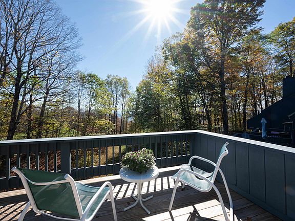 A fully furnished three bedroom/three full bath hilltop townhome condominium in the Quechee Lakes four seasons recreation community. Sunlit end unit sits at the top of Quechee’s four-person chair lift for “ski-in, ski-out” convenience, easy access hiking trails and expansive mountain views. The open main floor plan includes a large living room with vaulted ceilings, a new propane fireplace, and an adjacent dining area. A spiral staircase accesses a spacious loft used as a library/office. The king bed primary bedroom and the living room each open onto a 625 square foot east-facing private deck. The unit is fully equipped with many new kitchen and laundry appliances. Primarily a golfing community with two eighteen hole courses, the Quechee Club facilities boast a main clubhouse, three restaurants, a health club, indoor and outdoor pools, a family-friendly ski hill, and seasonal racquet sport facilities including tennis, paddle and pickle ball.