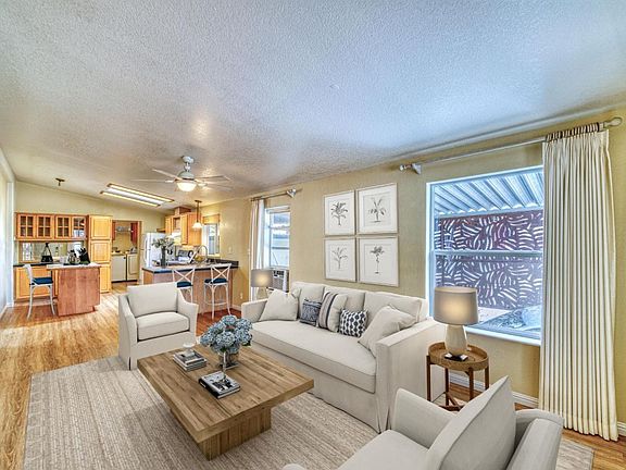 Welcome to this lovely beach home across from the Arana Gulch Trail and Yacht Harbor and close to Crow's Nest, Twin Lakes, and Seabright Beaches! Lovingly cared for 1344 sf 3/2 manufactured home with separate family room in centrally located, highly desirable all-age, rent-controlled park. Upgraded with Luxury Vinyl Flooring and earthquake reinforcement. Home can be two separate units: one 2/1 and the other a 1/1 with private entrance/yard. Private backyard outdoor space, landscaped yard, covered parking, and large storage unit on site. Island in kitchen can be removed if buyer prefers. Rec room, shared pool, and utility room. Water and garbage collection included in space rent. Annual property taxes under $500. Cul-de-sac location with easy access to local shopping, leisure, and commute activities while maintaining your own peace and privacy. Great opportunity to make the beach YOUR home!