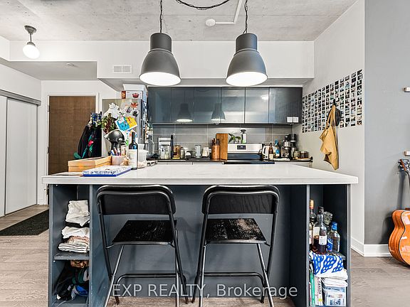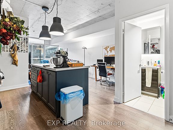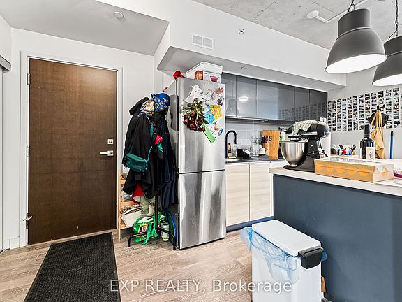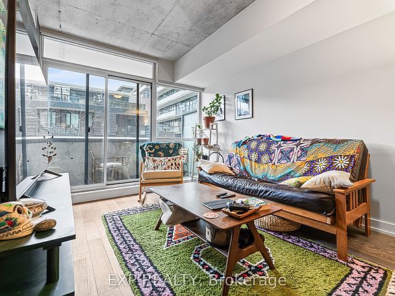 A rare find in Leslieville with parking included. This polished 1+den at The Carlaw offers bright, modern living with engineered hardwood, floor-to-ceiling windows, 9-ft brushed-concrete ceilings, sleek cabinetry-matched appliances, and a large balcony with a gas line for BBQs. The bedroom features its own window and a calm, private view, and the overall layout feels open and spacious. Steps to the best cafés, restaurants, parks, and daily conveniences in one of the east end's most loved neighbourhoods-simply move in and enjoy.