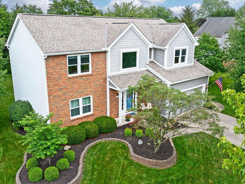Hoover Reservoir location, nestled in a picturesque setting, this beautifully updated 4-bedroom, 2.5-bath 2-story home with 2-car attached garage, blends timeless elegance with modern convenience. Step inside to discover hardwood flooring throughout the first floor, accentuated by crown molding in the living room and a tray ceiling in the dining room, setting a sophisticated tone for entertaining. The updated kitchen is a chef's dream, featuring leathered granite counters, a spacious island with storage, and Stainless Steel appliances, including a Gas Range, Refrigerator, and Dishwasher. Skylights flood the Great Room with natural light, complementing the grey brick fireplace hearth—a cozy centerpiece for gatherings. Retreat to the Primary Bedroom Suite, a sanctuary with dual closets, a walk-in closet, decorative ledge, and a charming window seat. The private, updated bath boasts a huge Glass shower with a built-in seat, dual sinks, and a separate toilet room. Three additional bedrooms offer ample space, while the hall bath features dual sinks and a tub/shower for added convenience.