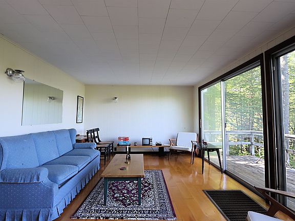 Looking for a serene getaway surrounded by nature? This charming camp on 87.3+/- acres, could be your perfect retreat! Step inside the living room and prepare to be enchanted by the beautiful maple floors and the large double sliding doors that open up to a deck with lovely views. The kitchen and dining area offer a warm and open space, featuring a wood stove and another set of sliding doors leading to the deck. On the main level, you'll find a comfortable bedroom and a bathroom. Upstairs, there's a spacious second bedroom and a convenient half bath. This camp operates off the grid, utilizing propane lights, propane refrigerator, and generator. With plenty of woods to explore and a handy shed for storage, you'll have all you need for your tranquil escape in Vermont. The water can be used for showers and to flush toilets but we cannot consider it potable. New owners will have to create a new water source if they want a drinkable water source, otherwise haul in drinking water.