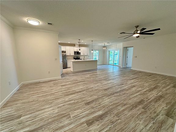NEW CUSTOM BUILT HOME! Upgrades Galore! Metal roof, impact windows and doors, granite countertops, custom cabinets, vinyl flooring, stainless steel appliances, huge walk in pantry, large walk-in closet in master suite, custom tile bathrooms, and crown molding through out home. Large two car garage with extra wide driveway. This home is move in ready and it won't last long!