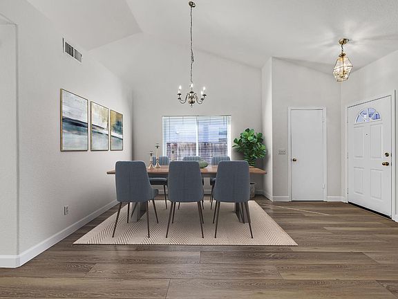 Beautifully updated single-story home showcasing modern comfort and timeless style. This beautiful 3-bedroom, 2-bath residence features new flooring, fresh interior paint, dual-pane windows, and an owned solar system with extra panels for energy efficiency and peace of mind. Enjoy a bright living room and formal dining area, perfect for gatherings, plus a spacious family room with a charming brick fireplace that adds warmth and character. New French doors open to an inviting backyard retreat with an extended, paved patio and low-maintenance landscaping in both front and back yards that is ideal for relaxing or entertaining. Situated in a welcoming neighborhood on a premium lot with paved and gated RV access and an extended driveway. This home truly has it all. With a new high-efficiency HVAC system and tankless water heater, every detail has been designed for comfort, style, and convenience. Conveniently located in Central Tracy near shopping and schools. Very nice home!! Some rooms have been virtually staged.