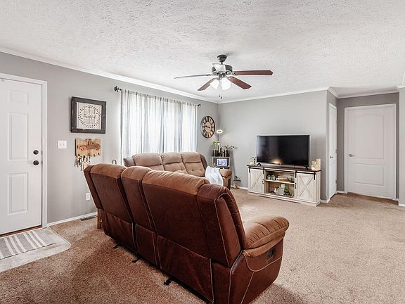 Open House cancelled. Welcome to this beautifully maintained 2019 home located in the desirable Lakeview Meadows community. With 3 spacious bedrooms, 2 full bathrooms, and 1,296 sq. ft. of thoughtfully designed living space, this home offers comfort, style, and functionality. Inside, you'll find full drywall throughout—no outdated paneling here—giving the home a modern and finished feel. The open-concept living area flows seamlessly into the kitchen, which features newer appliances, including a gas range, and a large eat-in island with seating for four—perfect for casual meals or entertaining. A generous dining area sits just off the kitchen. The primary suite offers a peaceful retreat with its own en-suite bathroom featuring a soaking tub/shower combo and a spacious walk-in closet. On the opposite side of the home, you'll find two additional bedrooms and another full bathroom, providing privacy and flexibility. A large laundry room makes chores a breeze, while the 4-year-old detached shed offers extra storage and conveys with the sale. Don't miss your chance to own this move-in-ready gem in a welcoming community.