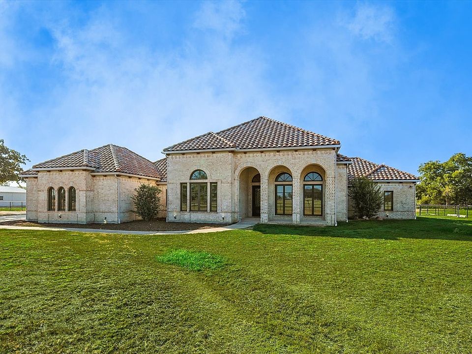Welcome to your 9.8 Acres setup for houses. This custom one story brick homes features, 3 bedrooms, 3 full bath and 1 half bath, office, 2 living areas, 3 car garage, 30x60 metal 4 stall barn with wash rack, office, wash room, tack room and half bath. Dry storage tank room, 30x34 hay or equipment barn, fenced and cross fenced, co-op water