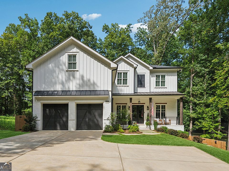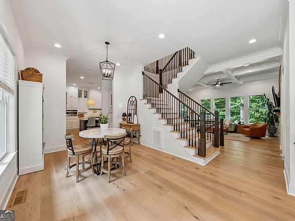 Suburban living has never looked better in this gorgeous Alpharetta masterpiece-a true gem boasting a charming rocking chair front porch within Milton High School district! Warm hardwoods flow throughout the expansive open floor plan, paired with a bright neutral palette that radiates warmth. Elegant wainscoting and refined trim throughout will delight you, adding a touch of timeless charm. The cozy living area, accented by an inviting fireplace and overlooking a serene wooded backyard, creates a positively chic space perfect for lively gatherings or quiet evenings at home. The chef's kitchen shines with a large island, sleek quartz counters, a stylish dry bar, and stainless steel appliances, ideal for whipping up your favorite meals or hosting festive get-togethers. Four spacious secondary bedrooms offer ample room for family, guests, or hobbies, while the stunning owner's suite boasts a huge walk-in closet with built-ins, an island, and a gorgeous ensuite featuring double vanities, a soaking tub, and a large shower for ultimate relaxation. In addition, there is a fantastic loft/bedroom that is perfect for a kid's playroom or office. A full, finished basement adds versatility with a bedroom, full bathroom, and cozy living area-perfect for movie and game nights or accommodating visitors. More than 5,700 sq ft of space, ready to be yours! You'll find idyllic suburban living within two miles of coveted Downtown Alpharetta, Avalon, and just minutes from local parks and shopping nearby, plus easy access to GA 400. Zoned for prestigious Milton High School, this home perfectly complements your lifestyle. Schedule your showing today and discover the life within Alpharetta you've been dreaming of!