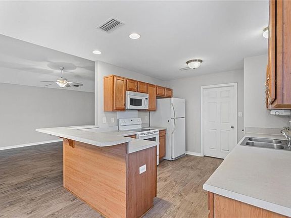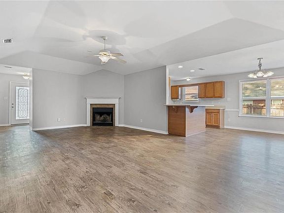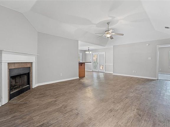 You’ll fall in love with this beautifully designed three bedroom and two bath home featuring an open, split floor plan with some recent upgrades. The spacious living room boasts raised tray ceilings, recessed lighting, and a cozy wood-burning fireplace with an elegant ceramic surround. The kitchen showcases white appliances and a peninsula bar, perfect for casual dining or entertaining. The luxurious master suite includes a jetted garden tub, separate shower, and dual vanities for added comfort. Enjoy your morning coffee or unwind in the evening on the large screened porch, offering a relaxing outdoor retreat. Recent updates include stylish vinyl plank flooring and freshly painted walls throughout. Additional features include vinyl windows, energy-efficient all-electric systems, and automatic garage door openers—making this home as practical as it is inviting.