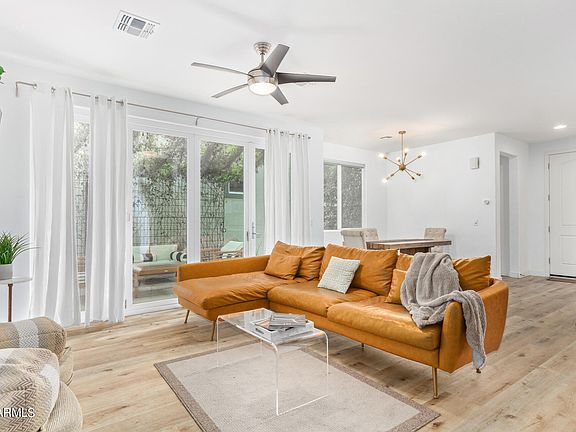 Fantastic 3 bed, 2.5 bath home in Phoenix is now on the market! Explore inside and you'll be in awe of the fabulous modern design. Bright and light interior features tall ceilings, elegant wood-look flooring t/out, living room w/textured accent wall, and aesthetic floating shelves. Kitchen offers tall white cabinetry, SS appliances, granite counters, stylish tile backsplash, and a huge island w/breakfast bar. Upstairs main bedroom boasts a wood panel design, spotless ensuite with dual vanities, frameless glass shower, a walk-in closet, and your own two-person infrared sauna for utmost relaxation. Built-in desk for your office needs! Accordion sliding glass doors open out to an enchanting patio space adorned with lush vines. Near shopping, dining, and easy access to freeways. Take a look!