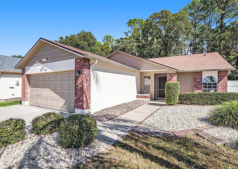 Spacious 3-Bedroom Home with Serene Backyard Views – No Rear Neighbors! Welcome to this beautifully maintained 3-bedroom, 2-bathroom home, perfectly designed for comfort, functionality, and Florida living. Nestled against a backdrop of lush trees and natural landscaping, this property offers the ultimate privacy with no backyard neighbors. Step inside to discover a bright and open floor plan featuring a formal dining room—ideal for entertaining or easily converted into a home office or den. The spacious eat-in kitchen is a chef’s delight with a breakfast bar, plenty of cabinet space, and an open flow into the great room, perfect for gatherings. The great room showcases a cozy fireplace and sliding glass doors that open to the screened- in lanai, where you can unwind and enjoy peaceful views of the tranquil backyard. Retreat to the large primary suite complete with a walk-in closet and a private ensuite bath, offering the perfect place to relax and recharge. The two-car garage provides ample parking and storage space for convenience. This home truly combines style, comfort, and a prime location, making it ideal for those seeking a private retreat close to everything. Don’t miss your opportunity to make this move-in ready gem your next home!