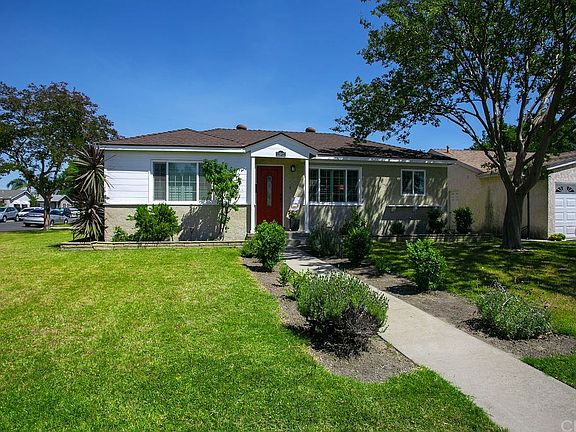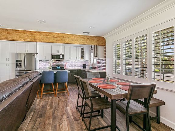 Truly one of the most beautiful homes you will have the pleasure of seeing. There is absolutely nothing left to do here but move in! Situated on a quiet, interior, corner lot location, this home has everything a new owner could imagine, as it has been completely remodeled from top to bottom. Featuring 2 bedrooms, and 1 bathroom, this home boasts wood-look tile flooring throughout, an eye-popping exposed wood beam that really opens the floorplan up, and a modern kitchen with a sit-down island, pendant lighting, 2-toned gray and white cabinetry, quartz counters, and stainless steel appliances. The full bathroom is complete with designer touches, including custom lighting and subway tile shower enclosure and accent wall. Spacious front, side, and rear yards, as well as a covered patio provide endless options for entertaining and family gatherings. Additional features include dual-paned, vinyl windows with custom shutters, recessed lighting, central heating and AC, copper plumbing, tankless water heater, inside laundry room, upgraded electric panel and wiring, and a finished 1-car garage that is almost too clean to put a car in (drywalled, lighting, overhead storage, upgraded opener). Hurry on this one!
