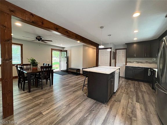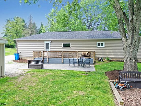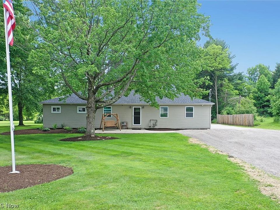 BEAUTIFULLY UPDATED 3 Bedroom & 2 Full Bath Ranch nestled on 1.64 Acres in Munson Twp! Enjoy one floor easy living with desirable open concept, tasteful decor, recessed lighting & wood laminate flooring throughout. Living and Dining open to remodeled Kitchen (2020) with all new cabinetry, center island breakfast bar, granite counter tops, farmhouse sink, walk-in pantry and new stainless steel appliances in 2021. The original Full Bath was completely renovated and all new 2nd Full Bath was added. 1st floor laundry with custom sliding barn door. Many major updates include: New Roof 2022, HWT 2020, Gas Furnace 2016, updated plumbing & electrical service, all lighting & fixtures, doors & trim, vinyl siding, front & back concrete patios and much more. Unfinished basement. Vinyl windows. 2+car detached garage plus storage shed. This home has been remodeled top to bottom and inside & out....nothing for you to do but move right in!! Chardon Schools.