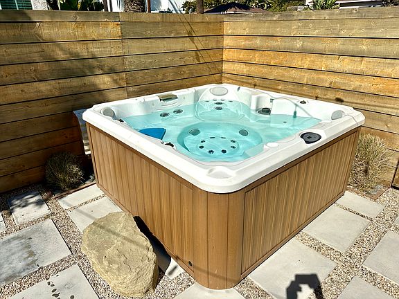 Step outside to your own private oasis spacious, landscaped, secluded outdoor space surrounded by mature greenery. Enjoy a soak in the hot tub under the palms, rinse off in the outdoor shower, or entertain friends at the fire pit or picnic table beneath the cacti and sprawling lemon tree.