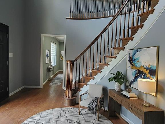 La cocina gourmet renovada cuenta con encimeras de granito, gabinetes de madera maciza, una isla con barra para asientos y electrodomesticos de acero inoxidable marca Whirlpool. La sala familiar incluye una claraboya, ventilador de techo y chimenea de ladrillo. La habitacion principal ofrece pisos de madera y un bano de lujo con tina de bano, ducha de vidrio y dos lavabos con encimeras de granito. El sotano terminado con dormitorio y bano completo agrega espacio adicional para recreacion u oficina en casa.
