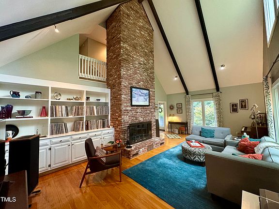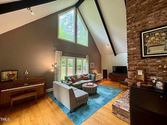 Gorgeous Private Oasis! Family Room with Soaring Vaulted two story Ceilings, glass, beams, brick wood burning fireplace, wet bar, bright granite countertops , bay window in updated kitchen, 2 Primary Suites, Main and Up, Primary on main addition 2018, Up Primary or Bonus Room, ensuite, huge basement, addition bedroom/flex, studio/office with ensuite full bath, huge work shop and storage area, dual double doors to exterior, fantastic two tiered deck pergola, overlooks lush landscaped 1.5 acre lot, fire pit, neighborhood lakes, tennis, pool, parks. Near Falls Lake