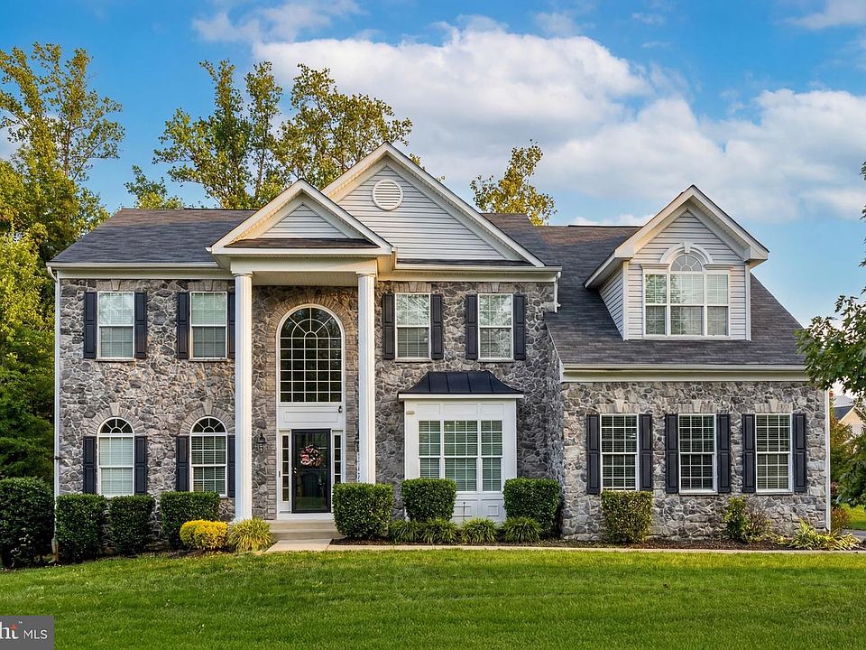 Located in the Holmehurst area of Bowie, this impressive Colonial-style estate with a classic stone façade and oversized side-loading garage offers refined living in a prime location, directly across from community tennis courts and a playground, and conveniently close to major routes serving Washington D.C., Baltimore, Columbia, and Annapolis. As soon as you walk into the grand foyer, you are welcomed by a formal sitting room to the left and an additional bonus entertainment space to the right, creating an immediate sense of scale and flexibility. A first-floor bedroom tucked away on the main level offers versatility as a private office, guest suite, or additional living space. Toward the back of the home, the layout opens into a stunning grand living room featuring an electric fireplace, vaulted ceilings, and walls of windows that flood the space with natural light and create an open, airy feel. The living area flows seamlessly into the gourmet kitchen, appointed with granite countertops, a lengthy center island, and high-end stainless steel appliances. A dining room provides access to the outdoor balcony, making indoor-outdoor living effortless. The main level is complete with a first-floor laundry room and a conveniently located half bath. Upstairs, the primary suite is a true retreat, offering abundant natural light, a dedicated sitting area, and dual walk-in closets. The luxury en-suite bathroom features dual vanities, a jacuzzi soaking tub, an oversized glass shower with dual shower heads, and private his-and-her water closets, offering elevated comfort and privacy. Additional upper-level bedrooms include a spacious bedroom connected by a Jack-and-Jill bathroom with dual vanities to another bedroom, along with a separate bedroom and full bath, providing comfort and privacy for everyone. The fully finished lower level is designed for entertaining at the highest level. This expansive space includes a large family or recreation area, a dedicated home theater, a full second kitchen, a custom wine room with a striking wine wall, a full bathroom, and a separate gym room, ideal for hosting, relaxing, or extended living arrangements. Outside, the home continues to impress with entertainment areas, including a Trex deck balcony, a covered space beneath the deck, a fire pit area with custom bench seating, and a dedicated barbecue area featuring two built-in grills—one ceramic egg-style grill and one traditional barbecue grill. These thoughtfully designed spaces create the perfect setting for hosting gatherings or enjoying quiet moments outdoors. This exceptional home offers luxury, space, and lifestyle in one of Bowie’s most desirable areas, with the added benefit of a VA assumable mortgage at 2.5%. A rare opportunity to own a home that truly has it all.