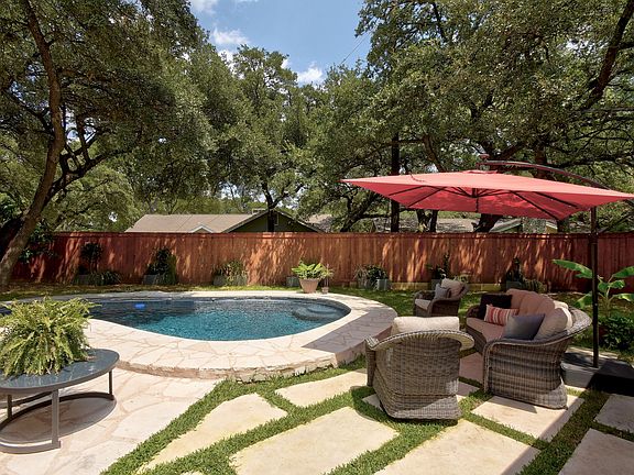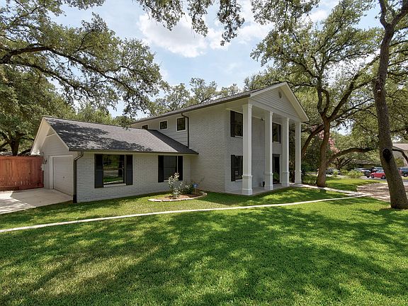 Move-in Ready! Colonial beauty in highly coveted Balcones Village! This home's upgrades include recent windows, Hardi-plank siding, vapor barrier, Two heat pumps, Aqueduct leafless gutter system and extensive outdoor decking. Enjoy a 1550 gallon rain water harvesting system, gorgeous cedar wall privacy fence and a recently resurfaced pool and pool deck, recent pump & filter. Enjoy 7" oak plank floors in formals, a sunroom/atrium with tons of natural light. Two Masters one up, one down for flexibility.