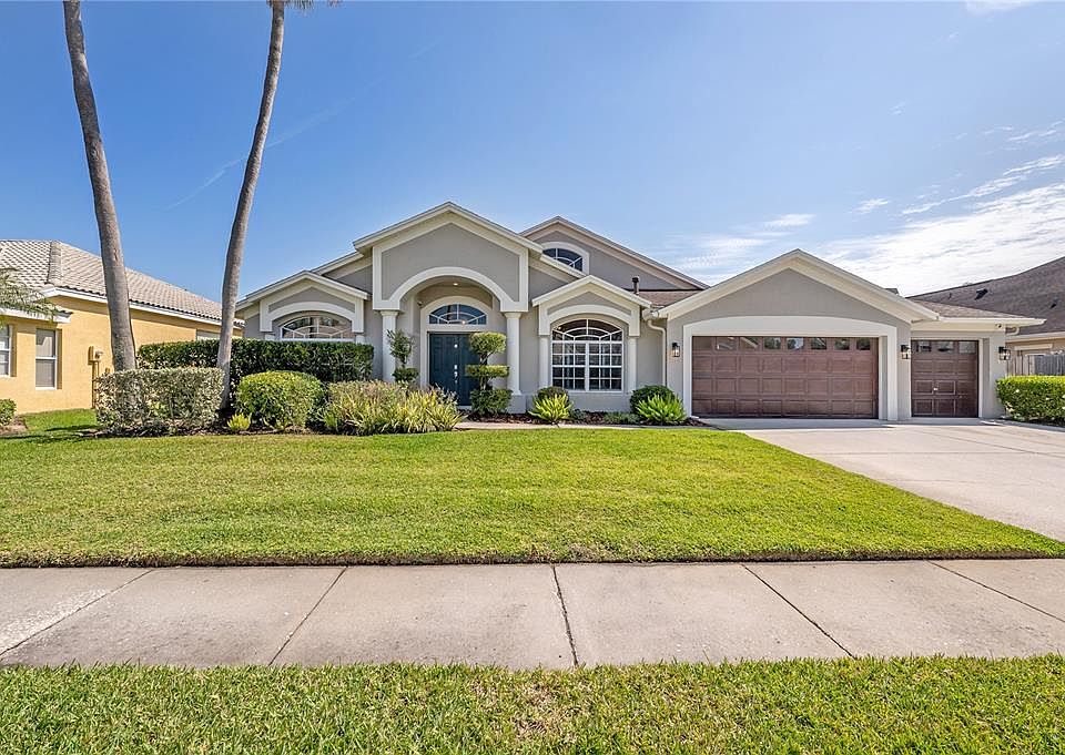 Experience the epitome of luxury living in this custom updated stunning pool home, located in the serene Radcliffe neighborhood of Westchase. You will be captivated by the charm of the winding tree-lined streets and the tranquility of a picturesque pond—a welcoming sight that sets the stage. Step through the double front doors and into a world of refined style, comfort and sophistication. Situated on a spacious lot (0.20 acres) and with over six figures in recent upgrades, entertaining guests will come with ease in the formal dining room, featuring a custom wood-paneled wall, or retreat to the office/den adorned with double French doors and exquisite porcelain tile floors. The outdoor oasis beckons with an expansive screened-in living area, perfect for hosting gatherings with loved ones. Relax in the gas heated pool or unwind in the spa, surrounded by a fully fenced backyard for ultimate privacy. The heart of the home lies in the gourmet chef's kitchen, where custom wood cabinetry, Cambria quartz counters, and premium Viking appliances await. Vaulted ceilings with rustic beams add character to the space, while the adjoining living room features a custom-built entertainment center with a 74" Dimplex Ignite electric fireplace and floor-to-ceiling rock wall—a cozy retreat for relaxing evenings at home. Retreat to the spacious master suite, offering stunning views of the pool, vaulted ceilings, and a custom paneled wood wall. Indulge in the luxurious master bath en suite, complete with a double wood vanity, honed marble floors, and an oversized seamless glass walk-in shower. Additional features include wide plank French Oak floors throughout the living areas, cathedral ceilings, custom moldings, and an abundance of custom built in shelves. Modern conveniences such as a tankless water heater, LED recessed light fixtures, an electric car charger, a water softener and custom landscaping add to the allure of this exceptional home. Enjoy the vibrant lifestyle that Westchase offers, with top-rated schools, shops, restaurants, parks, playgrounds, golf, and community amenities just moments away. Don't miss your chance to make this exquisite pool home your own.