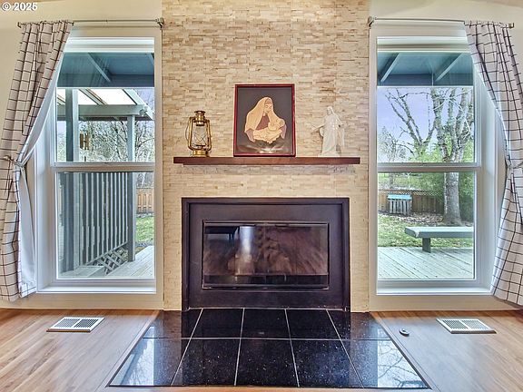 Outdoor Entertainer's Paradise! Step into this beautifully updated ranch, perfectly situated on a serene, oversized lot that backs up to the stunning Greenway Park. With 87 acres of trails, playgrounds, disc golf, basketball and tennis courts, and a Wetlands Natural Area, you'll have endless outdoor activities right at your doorstep. Host gatherings year-round in the spacious open-concept living room or on the large, partially covered, two-tier deck overlooking the expansive backyard with a flagstone-paved fire pit. This home is located in a quiet, well-designed neighborhood close to schools, shopping, public transit, and Highway 217, providing quick access to all parts of the west metro area. Enjoy several updates, including oversized windows that flood the space with natural light and offer views of the greenspace. The kitchen features granite countertops, stainless steel appliances, a pantry, and a cook island with an eating bar. Cozy up by the gas fireplace in the living room. The primary suite includes a bath with a walk-in shower, twin sinks, and heated tile floors. The updated main bath and second bedroom with a built-in bookcase for a home office option add to the home's charm. Additional features include a seller-owned solar system, a garage wired for a future electric vehicle charging system of your choice, and a tool shed with oversized doors. A newer refrigerator, washer, and ductless dryer are included with an acceptable offer. Come tour this amazing home and experience its tranquility for yourself!