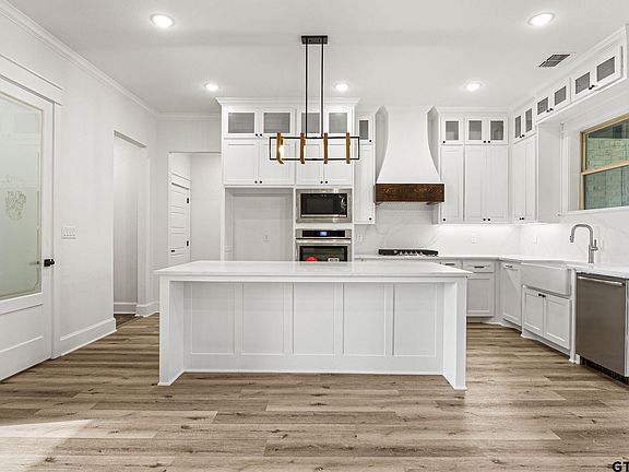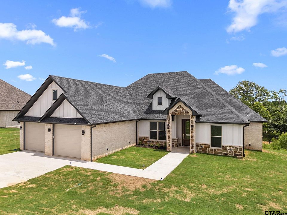 Modern design meets everyday comfort in this stunning new construction home featuring 4 bedrooms, 2 bathrooms, and a thoughtfully designed split floor plan. Step inside to soaring 16-foot ceilings in the living room, where a gas fireplace adds warmth and ambiance. The open layout flows into a chef-inspired kitchen complete with quartz countertops throughout, a gas cooktop, electric oven, large walk-in pantry and a large island with seating, perfect for casual meals or entertaining. Just off the kitchen is a formal dining area, ideal for gatherings and special occasions. The spacious master suite is a private retreat with a luxurious en-suite bath featuring a double vanity, soaking tub, separate shower stall, and a large walk-in closet. The second bathroom also offers a double vanity, making it perfect for family or guests. A mud bench just off the 2-car garage adds convenience to your daily routine. Smart and efficient details include a gas heater, gutters with 4-inch drain pipes, and a freeze sensor for the sprinkler system. The exterior combines timeless brick and stone combo with durable Hardie siding, ensuring low maintenance and long-lasting curb appeal. Enjoy peaceful views of a neighboring pond and grazing cattle from your raised back porch, an ideal spot to relax and take in the scenery. With its blend of modern style, functional features, and serene surroundings, this home offers the perfect balance of design and livability.